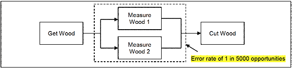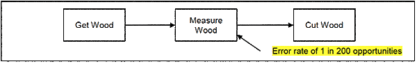 Figure 2 is a process flow map of our bygone carpenters‟ advice. With the added proof-check – the second measurement – the error rate falls to 1 in 5,000. Now work is scrapped only once in every 20 weeks. Those carpenters of the past knew a thing or two about doing masterly work.