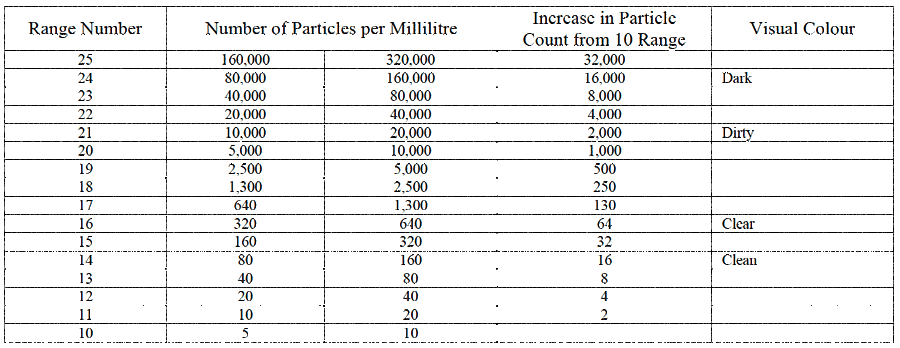 10 ISO 4406 – ‗Hydraulic Fluid Power – Fluids – Method for Coding the Level of Contamination by Solid Particles‘