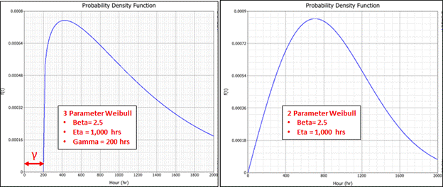 Using the 3 Parameter Weibull requires good engineering judgment. If this type of distribution comes up as the best fit in a Life Analysis exercise, the analyst should double check if a failure free period applies in reality. On other words, ask: can this component have a failure free period in its lifetime? Conversely as I have often witnessed, the 3 Parameter Weibull is used as the best fit but the reality of the component is different. That would be incorrect and lead to poor decision making.