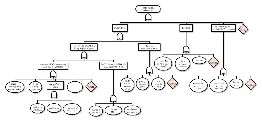 When something fails, it’s easy to rush toward our favorite explanation (like ‘it must be the supplier’s fault’ or it’s always the software’). A fault tree forces discipline. By moving one layer at a time – system, subsystem, component, part, manufacturing process, installation step and so on – we brainstorm broadly and exhaust each layer before moving further down. That prevents us from skipping straight to the causes we want to believe, and instead ensures we develop a wide, balanced list of potential root causes.
