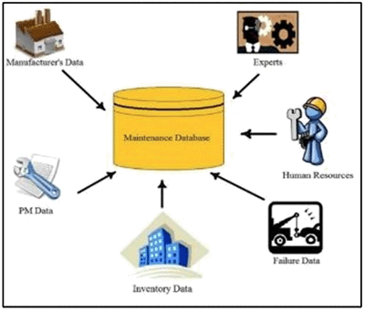 All maintenance systems produce data which are used to observe and monitor the condition of the assets in the company. These data are usually stored in huge maintenance databases. Figure 1 overviews the sources of data available to be interrogated and analysed for business information and added value.