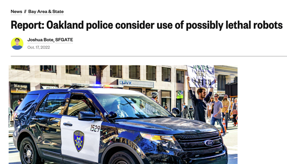 Last week, the San Francisco Board of Supervisors gave the San Francisco Police Department authority to use killer robots. The vote was 8 to 3 to approve robo cops. San Francisco is the most liberal city in the United States. Oakland and other cities are thinking the same.