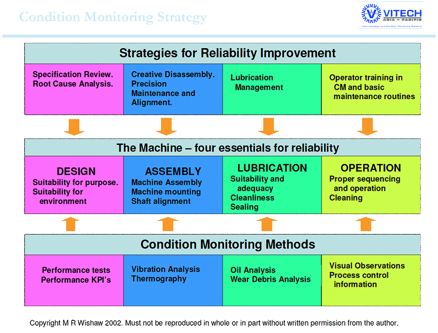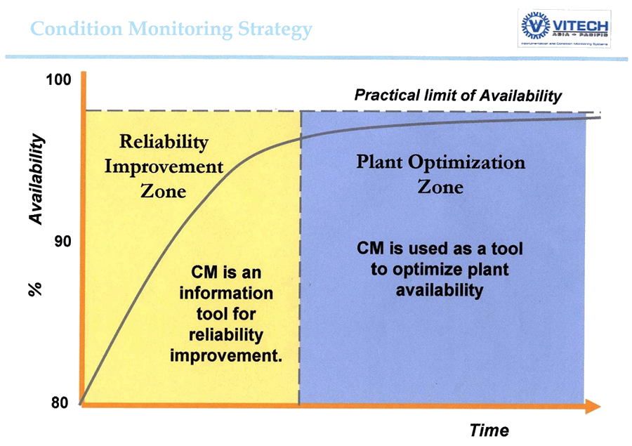 Again it’s simplicity itself. Condition monitoring is a tool to gather the information you need to focus your efforts in increasing reliability. In time you improve the plant and the people so together they deliver world class availability.