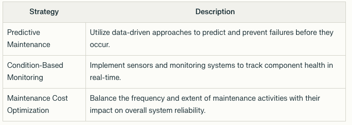 3. Maintenance Cost Optimization: Balance the frequency and extent of maintenance activities with their impact on overall system reliability.