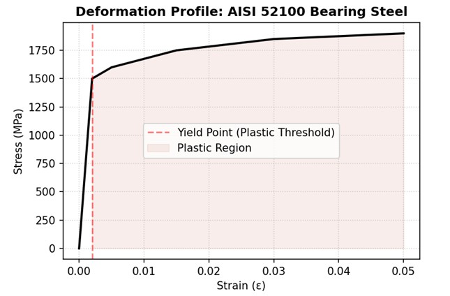 Plastic deformation occurs when mechanical stress exceeds the elastic limit of the alloy. For standard AISI 52100 bearing steel, this yield point typically hovers around 1,500–1,800 MPa. Once reached, dislocations within the crystalline lattice move permanently along slip planes. In bearings, this is often localized (hertzian contact stress), while in shafts, it is frequently a bulk phenomenon (torque overloads).