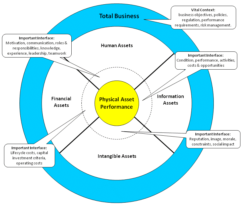 To achieve an organization’s strategic plan the five interfaces of human assets, information assets, intangible assets, financial assets and physical assets have to be managed holistically. From this realization important interactions and relationships emerge throughout the asset life cycle that must always be borne in mind. The principal interfaces for successful physical asset management is the important relationship between those who operate the assets and those who ensure their ongoing availability.